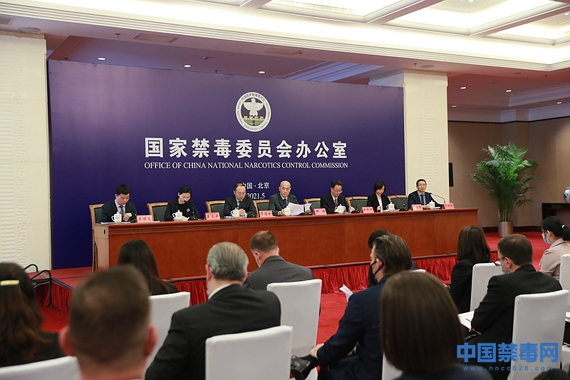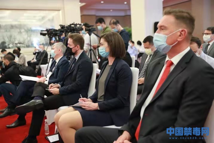 国家禁毒办副主任、公安部禁毒局副局长邓明,国家禁毒办副主任、公安部禁毒局二级巡视员于海斌,国家卫生健康委员会副处长王曼莉,国家药品监督管理局处长李卫华,公安部禁毒局禁制毒品处副处长刘增权,国家毒品实验室副处长花镇东参加新闻发布会并答记者问。新闻发布会由国家禁毒办副主任、新闻发言人、公安部禁毒局二级巡视员李宪辉主持。驻华执法及警务联络官30余位参加新闻发布会。 |