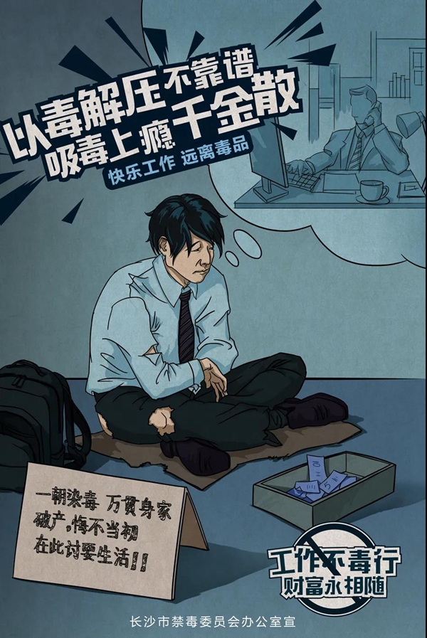 快乐工作 远离毒品 切记 以毒解压不靠谱 吸毒上瘾千金散
